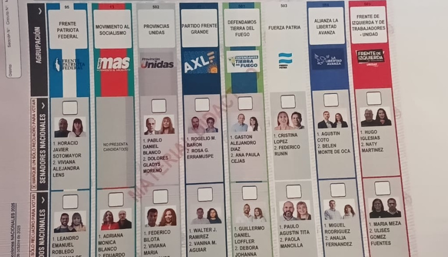 Luego de que los frentes electorales y partidos políticos de Tierra del Fuego oficializaran las candidaturas para competir en octubre por tres bancas en el Senado y dos en la Cámara de Diputados, la Junta Electoral Nacional definió el orden de los espacios de la Boleta Única de Papel.