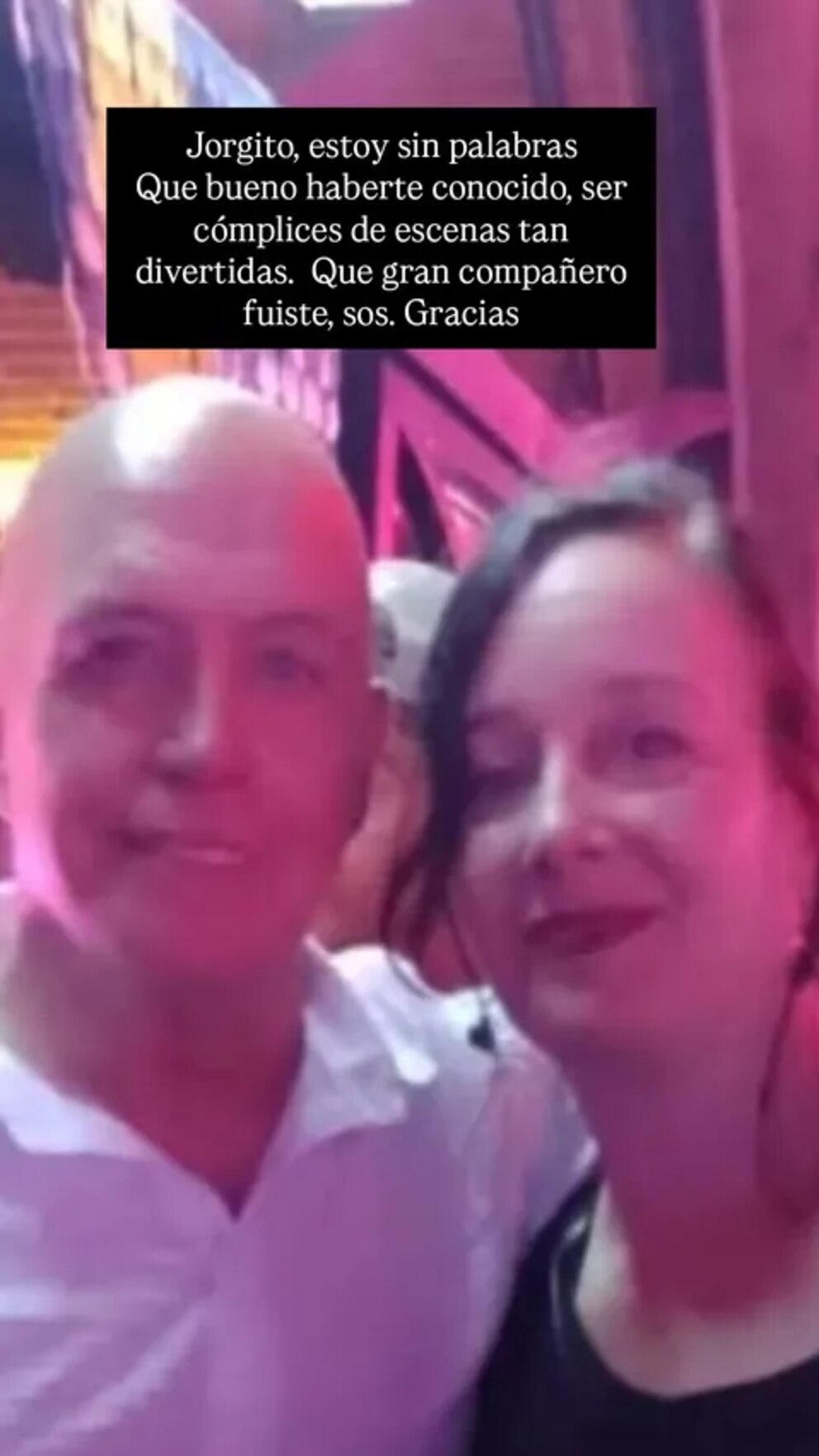 Ana Garibaldi, la actriz argentina que interpreta a Gladys Guerra —la esposa de Mario Borges en El Marginal y protagonista del spin-off En el barro—, sumó a los homenajes una emotiva foto y palabras que atraviesan la pantalla: “Jorgito, estoy sin palabras. Qué bueno haberte conocido, ser cómplices de escenas tan divertidas. Qué gran compañero fuiste, sos. Gracias”.
