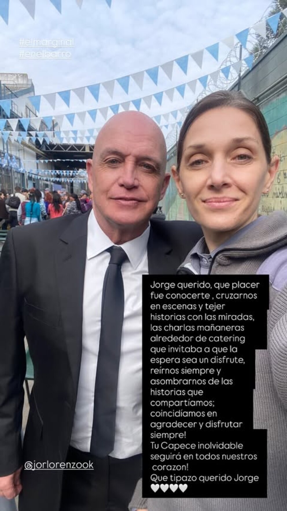 Las redes también se volvieron un memorial vivo poblado de homenajes sentidos. Nicolás Furtado, quien le dio vida a Juan Pablo Diosito Borges en El marginal, subió una imagen de Lorenzo a sus historias de Instagram y escribió: “Que en paz descanses, Jorge querido”, junto a un corazón rojo.