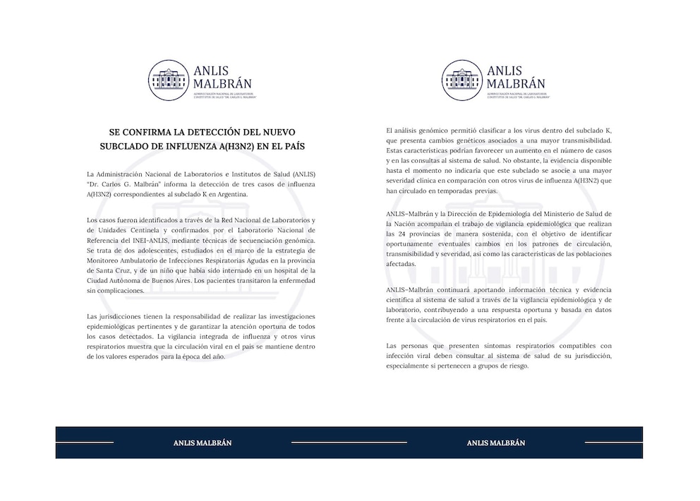 El comunicado del Instituto Malbrán acerca de la detección del nuevo subclado de Influenza A en el país